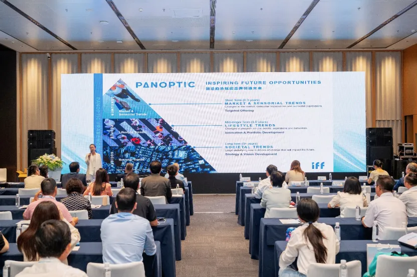 国际香料日化香精大中华区王静红商务总监分享的内容是《2024潮流新引擎》,围绕 “情绪光谱、地球至上、缤纷玩趣、奢香人生”四个主题详细介绍了“香”的前沿趋势如何赋能品牌创造未来。