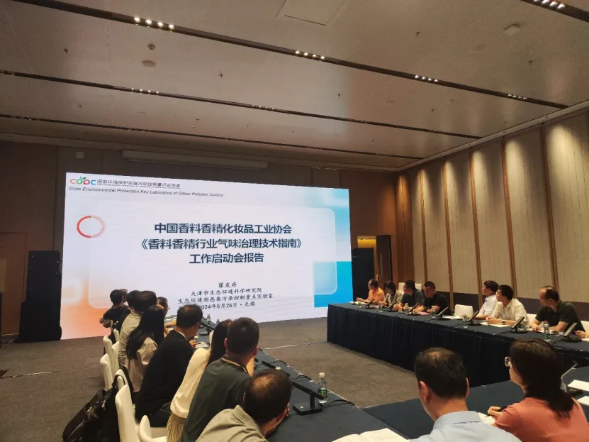 为帮助香料香精企业提升气味治理水平,中国香料香精化妆品工业协会(以下简称“中国香化协会”)联合生态环境部恶臭污染控制重点实验室编制《香料香精行业气味治理技术指南》团体标准。根据团体标准立项流程,5月26日下午,中国香化协会在江苏省无锡市国际会议中心组织召开了《香料香精行业气味治理技术指南》团体标准制定启动会,部分香料香精企业及环保单位受邀参加本次启动会。