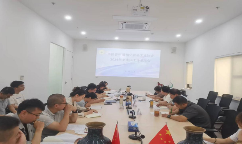 7月8日中国香料香精化妆品工业协会召开了协会2024年上半年工作总结会,理事长颜江瑛、副理事长王来冬、顾问董树芬、秘书长穆旻及协会全体人员参加了本次会议。