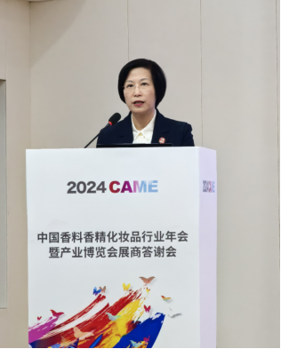 中国香妆协会理事长、医学博士颜江瑛在答谢会上首先发表了致辞。她表示,继在南京成功举办2024中国香料香精化妆品行业年会暨产业博览会之后,至今有一个多月的时间。在这个时间里,她是百感交集的。总的来说,有四感:感谢,感动,感恩、感怀。