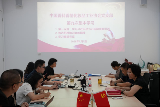 2025年7月7日,中国香料香精化妆品工业协会(以下简称:中国香妆协会)党支部召开支部大会,举办重温《中国共产党章程》专题学习。党支部书记颜江瑛主持学习,协会党支部全体党员参加。