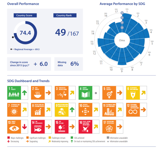 根据SDSN发布的报告,2025年中国的SDG指数排在167个国家中的第49位,与上一年相比跃升19位。我国已达成SDG 1(无贫穷)和SDG 4(优质教育),在SDG 1(无贫穷)和SDG 9(产业、创新和基础设施)上的进展顺利,在SDG2(零饥饿)、SDG5(性别平等)、SDG12(负责任消费与生产)、SDG 14(水下生物)、SDG 15(陆地生物)、SDG 17(促进目标实现的伙伴关系)上的进展保持不变。报告还指出,中国的“一带一路”倡议作为大型的基础设施投资倡议,促进了国家与民族间的互联互通。
