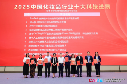 9月25日,在2025CAME香妆盛典上,2025中国化妆品行业十大科技进展在2025CAME重磅发布。