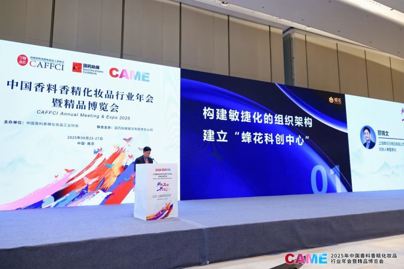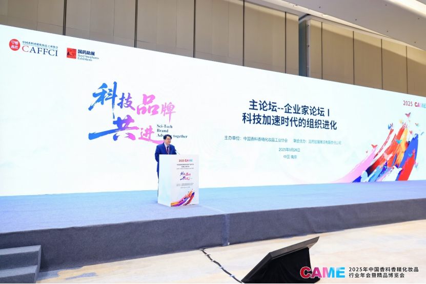 9月26日上午,由中国香料香精化妆品工业协会与国药励展联合主办的2025中国香料香精化妆品行业年会暨精品博览会(2025CAME)之企业家论坛(首场)在南京成功召开。此次论坛以“科技加速时代的组织进化”为基调,汇聚了来自上海蜂花、山东福瑞达、云南贝泰妮、欧莱雅、安利、芬豪香精、逸仙集团、花王、珀莱雅等国内外知名企业的领军人物与顶尖专家,共同勾勒在全球视野与本土创新交织下,中国香料香精化妆品行业迈向高质量发展的清晰路径与未来图景。论坛现场座无虚席,气氛热烈。