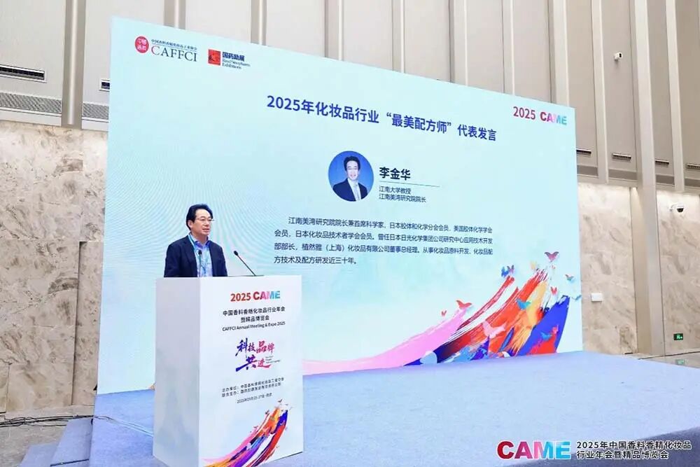 李金华教授作为“最美配方师”代表分享了获奖感悟,他表示此次活动让化妆品配方师这个群体感受到了前所未有的关注与尊重,这将极大激励整个技术团队坚守初心、追求卓越。“最美配方师”称号既是鼓励,更是一份责任,化妆品配方师们将秉承“匠心铸品质、科技护美丽”理念,持续探索创新,为行业高质量发展注入新动能。