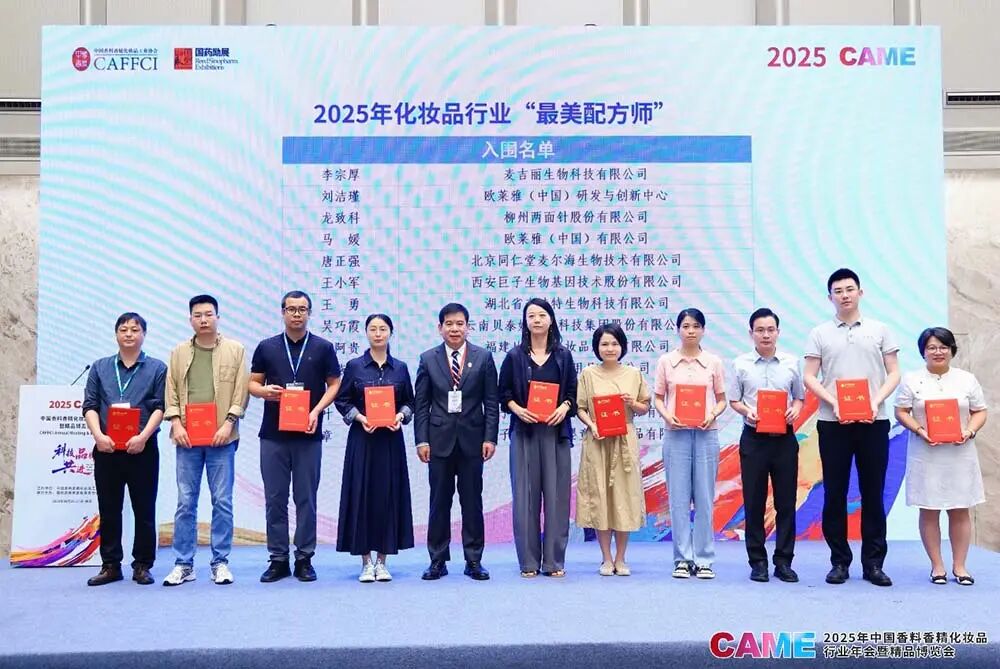 9月27日,在2025CAME中国香妆行业人才培养与发展论坛上,隆重举行“2025年匠心配方·科技向美——寻找化妆品行业最美配方师”活动颁奖仪式。本次活动是由中国香料香精化妆品工业协会(以下简称“中国香妆协会”)主办,中国香妆协会人才建设专业委会和中国香妆融媒体联合承办,旨在深入贯彻人才强国战略,加强行业人才队伍建设,弘扬精益求精的工匠精神。经专家评审委员会的审核,最终共有26位化妆品配方师荣获2025年“最美配方师”称号。