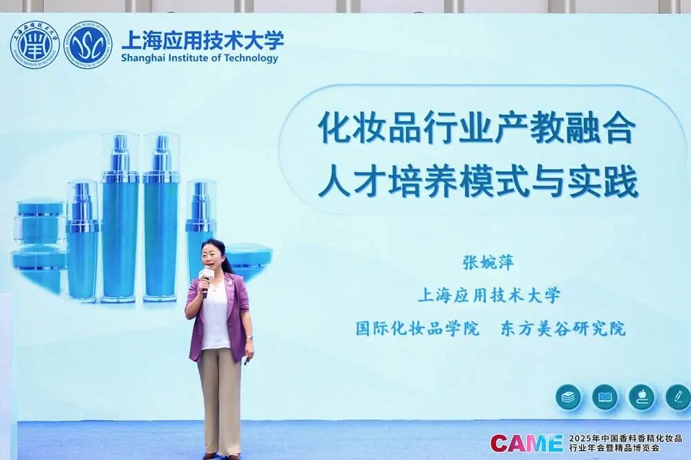 上海应用技术大学国际化妆品学院、东方美谷研究院执行院长张婉萍教授为我们带来《化妆品行业产教融合人才培养模式与实践》的主题演讲,从产教融合的视角为我们展示了高校人才培养的创新路径与实践成果,通过校企协同、赛事联动、实习实训等多元举措,构建了“教学—实践—就业”闭环生态,有效提升了人才质量与行业适配度,为产业高质量发展提供了有力支撑。