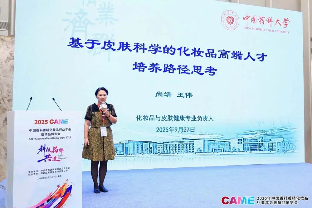 中国药科大学化妆品科学与技术学科学术带头人尚靖教授在《基于皮肤科学的化妆品高端人才培养路径思考》的主题演讲中,聚焦皮肤科学与化妆品产业的深度融合,探讨了高端人才培养的创新路径,旨在以科研驱动产品升级,推动行业迈向专业化、科学化、国际化发展新阶段。