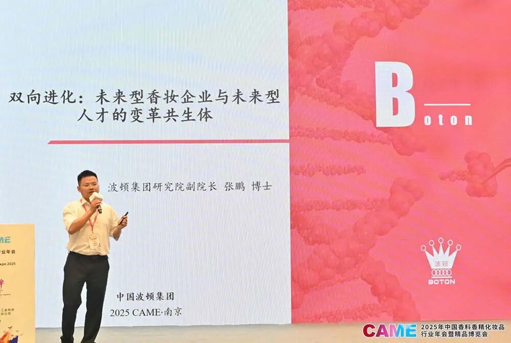 波顿集团研究院副院长、波顿(上海)生物技术有限公司技术中心总监张鹏博士在《双向进化:未来型香妆企业与未来型人才的变革共生体》报告中,结合企业实践,探讨了未来型香妆企业与人才的共生进化,深入剖析了未来型人才的变革思路,强调了传统产业升级、生物技术创新与AI应用的发展趋势,呼吁突破思维局限,共塑行业未来。