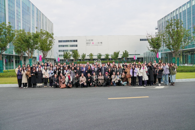 培训期间,会领导、授课专家及全体参训学员一同来到东方美谷·自然堂未来美妆城进行实地考察。东方美谷·自然堂未来美妆城位于上海奉贤,由自然堂集团倾力打造,该项目以“首发经济+文旅商体展”深度融合为核心,集美妆科学知识传播、产品展示、智慧生产、即时消费,实现了从“制造源头”到“消费终端”的无缝衔接,目前已成功入选“2025年上海市十大标志性文旅项目”。未来美妆城内设有化妆品科学与艺术展厅,通过“数说皮肤”、“航天护肤科技”以及互动装置等趣味科普形式,带领参访者了解化妆品背后的基础科学,同时深度融入自然堂集团的尖端研究成果,集中展示国货美妆的前沿探索与科研实力。
