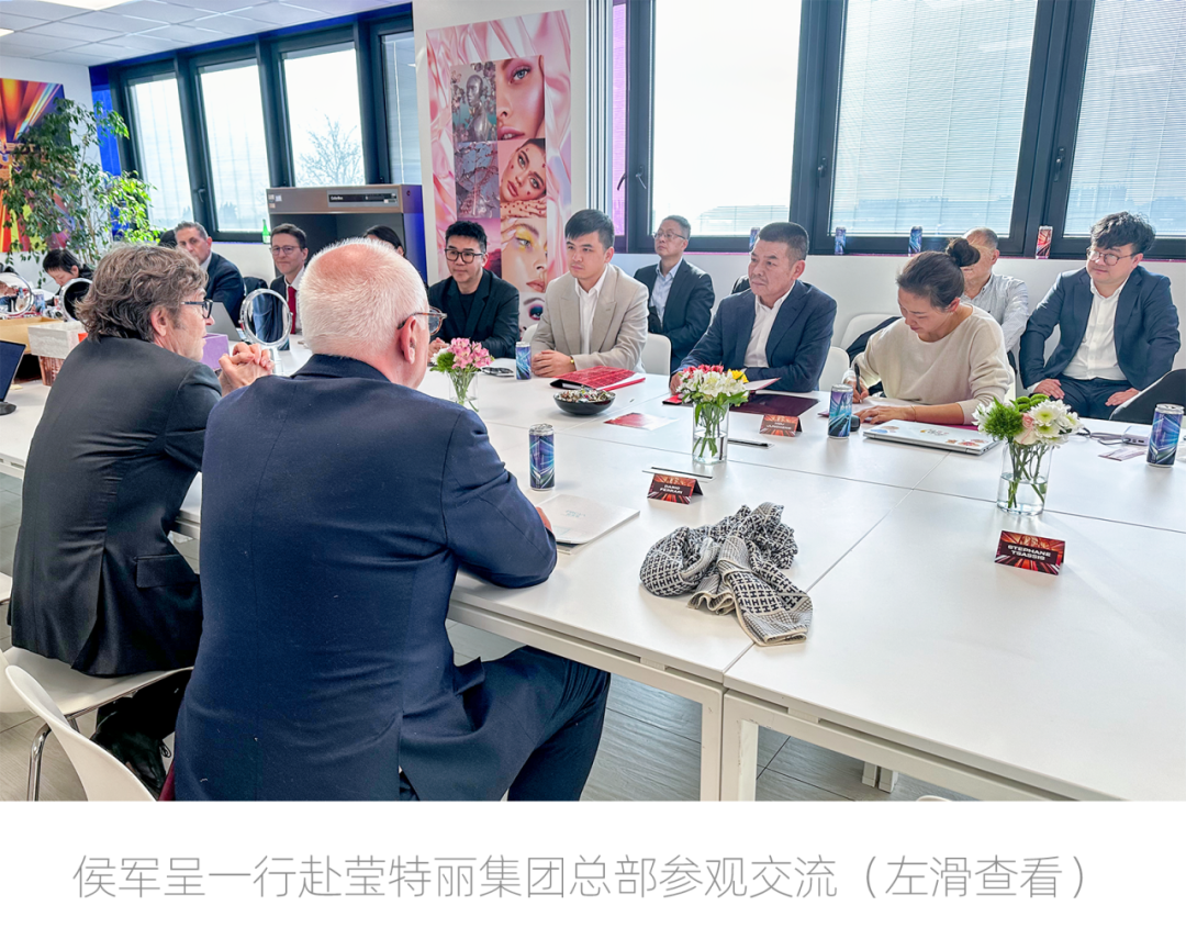 展会举办前后,侯军呈、侯亚孟及唐毅等一行赴欧洲多个国家开展参观交流活动,先后访问位于意大利米兰的全球化妆品制造商莹特丽集团总部、跨国特种化妆品集团德国赢创等全球知名的化妆品行业企业,围绕原料创新、研发技术及产品开发等议题展开深入探讨,旨在汲取国际先进经验的同时,进一步加深双方的了解,为未来的合作共赢奠定基础。
