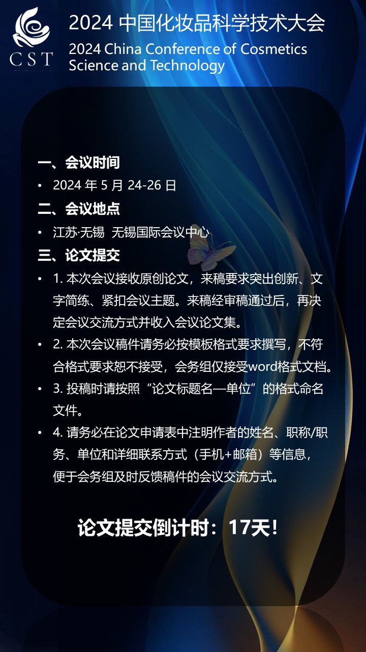 诚挚邀请参加“2024中国化妆品科学技术大会(第十期宣传)