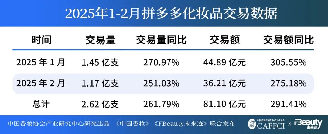 2024年全年拼多多化妆品共实现431.97亿元,按照目前的增速,2025年拼多多化妆品的总交易规模很可能会超过500亿元甚至更多。