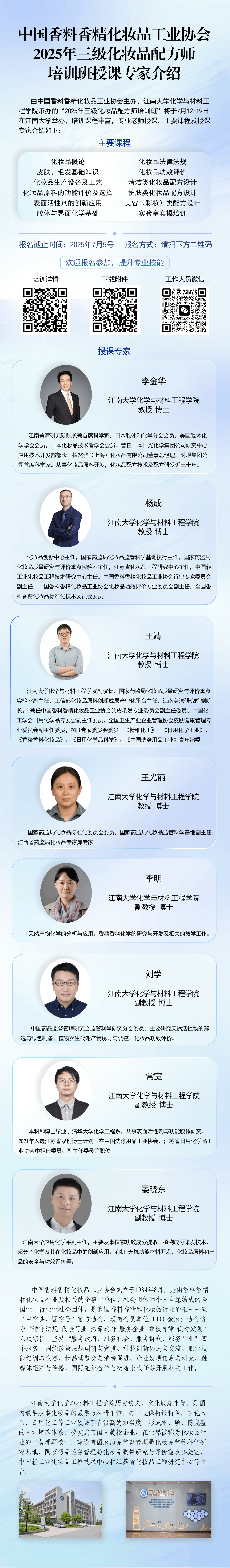 重磅推出:2025年三级化妆品配方师培训授课专家!
