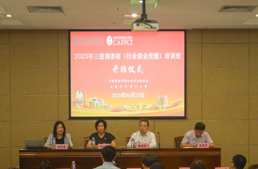 6月23日,由中国香料香精化妆品工业协会(以下简称“中国香妆协会”)主办、上海应用技术大学香料香精化妆品学部承办的2025年三级调香师培训班(总第九期)开班仪式在上海应用技术大学奉贤校区顺利开班。