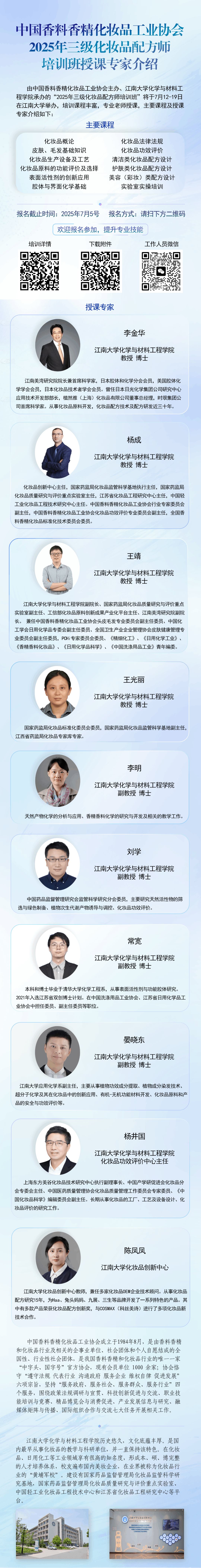 中国香料香精化妆品工业协会2025年三级化妆品配方师培训班授课专家介绍