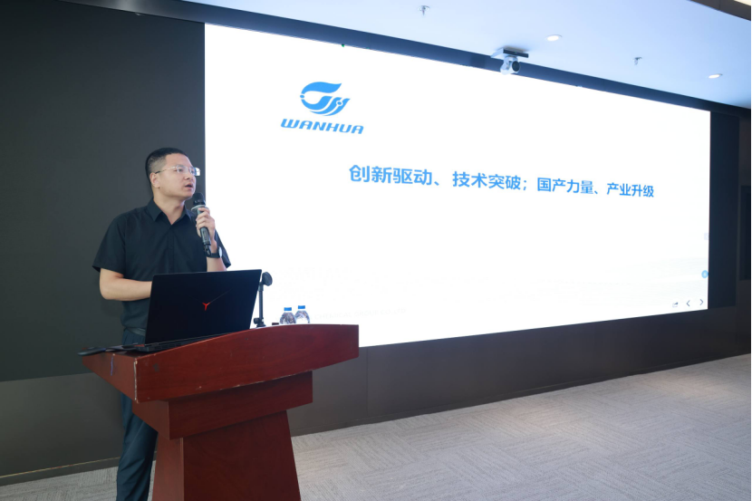 万华化学集团股份有限公司万华化学护理业务研发负责人李棒棒以《创新驱动、技术突破;国产力量、产业升级》为题,剖析了全球化妆品原料市场现状与技术趋势,并系统展示万华化学在高值原料领域的创新成果与可持续解决方案。万华化学依托其化学合成、天然提取与合成生物学三大技术平台,推动原料生产向生物基、低碳化和高效化转型。
