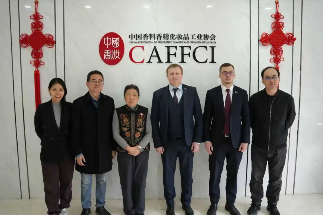 2026年2月5日上午,白俄罗斯共和国驻华大使馆高级参赞别列佐夫斯基·德米特里访问中国香料香精化妆品工业协会(以下简称“中国香妆协会”),白俄罗斯驻华大使馆三等秘书波补克·阿杜尔德陪同访问。中国香妆协会顾问董树芬、中国香妆协会副秘书长兼化妆品部主任刘洋、数字信息部/产业研究部主任姚永斌、国际事务部陈香莉等代表协会参与交流。双方围绕两国化妆品市场现状、产品准入、渠道对接及双边产业合作前景等议题开展务实交流,达成多项合作意向。
