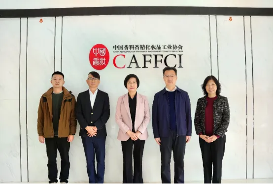 2024年11月14日上午咸宁市市场监督管理局局长方兆淼等一行三人到访中国香料香精化妆品工业协会(以下简称“中国香妆协会”)交流工作,中国香妆协会理事长颜江瑛、副秘书长兼办公室主任李英参加了交流。