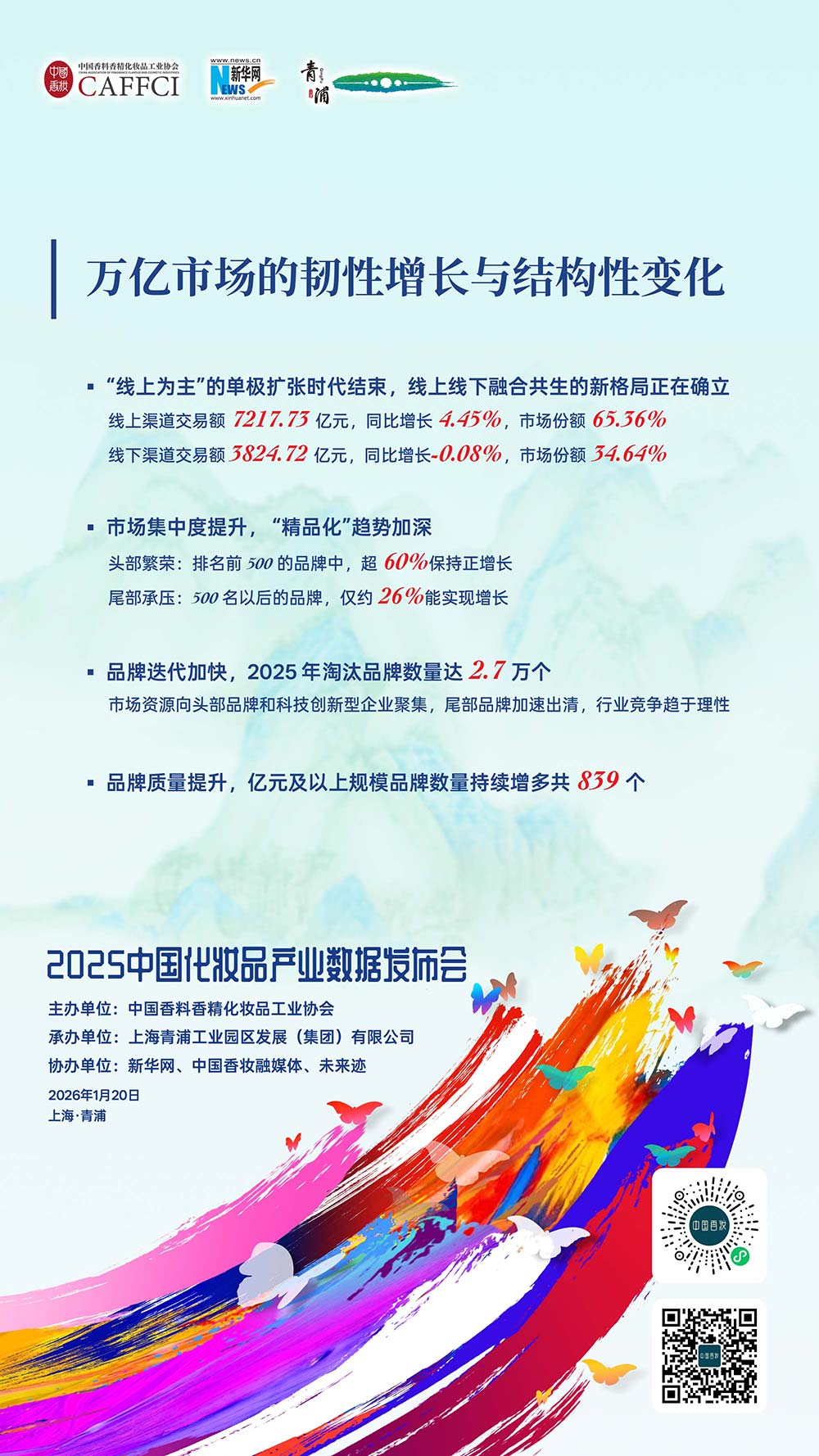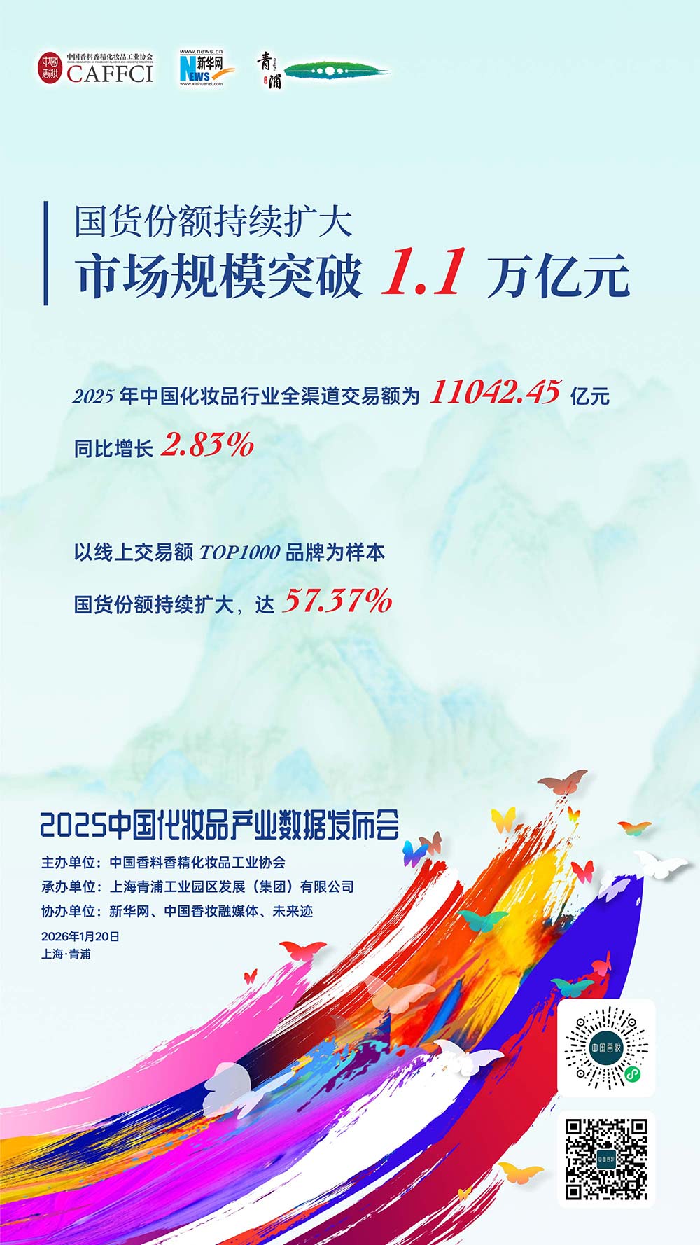 国货品牌竞争力持续攀升,市场份额进一步扩大至57.37%,以绝对优势领跑市场。从国别品牌竞争格局来看,以线上交易额TOP1000为样本,2025年中国品牌交易总额达2688.63亿元,远超其他国家品牌;法国品牌以755.41亿元交易额位居第二,市场份额16.12%;美国、日本、韩国品牌分别以550.33亿元、299.31亿元、187.24亿元交易额位列第三至第五,市场份额分别为11.74%、6.39%、4.00%;其他国家品牌合计占比4.38%。国货品牌的崛起标志着中国化妆品市场已从“国际品牌主导”转向“国货核心引领”的发展新阶段。
