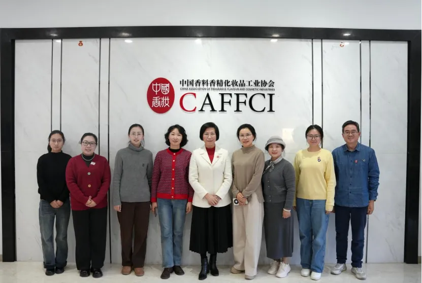 1月3日下午,湖州市市场监管局党委委员、总工程师朱春妹,湖州市市场监管局化妆品处副处长何佩,吴兴区市场监管局党委书记、局长王道文,吴兴经济开发区党工委委员、纪工委书记郑碧云,吴兴区埭溪镇副镇长吴霜,吴兴区埭溪镇美妆旅游办干部章丽婷到访中国香料香精化妆品工业协会(以下简称:中国香妆协会),中国香妆协会产业研究中心主任姚永斌、化妆品部许梦然一同参加座谈。