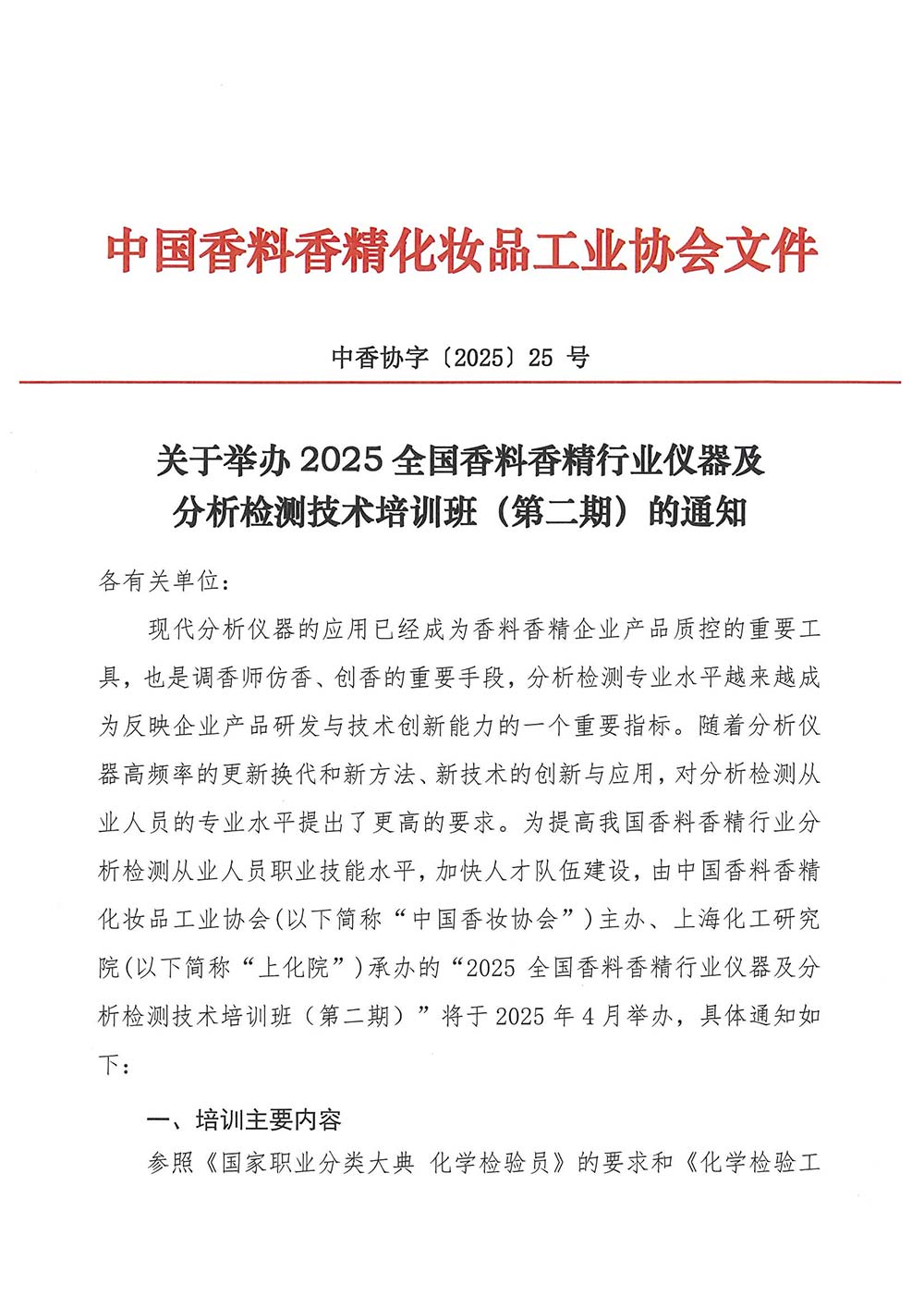 关于举办2025全国香料香精行业仪器及分析检测技术培训班(第二期)的通知