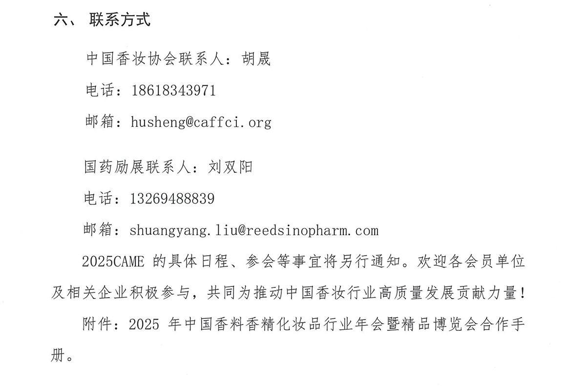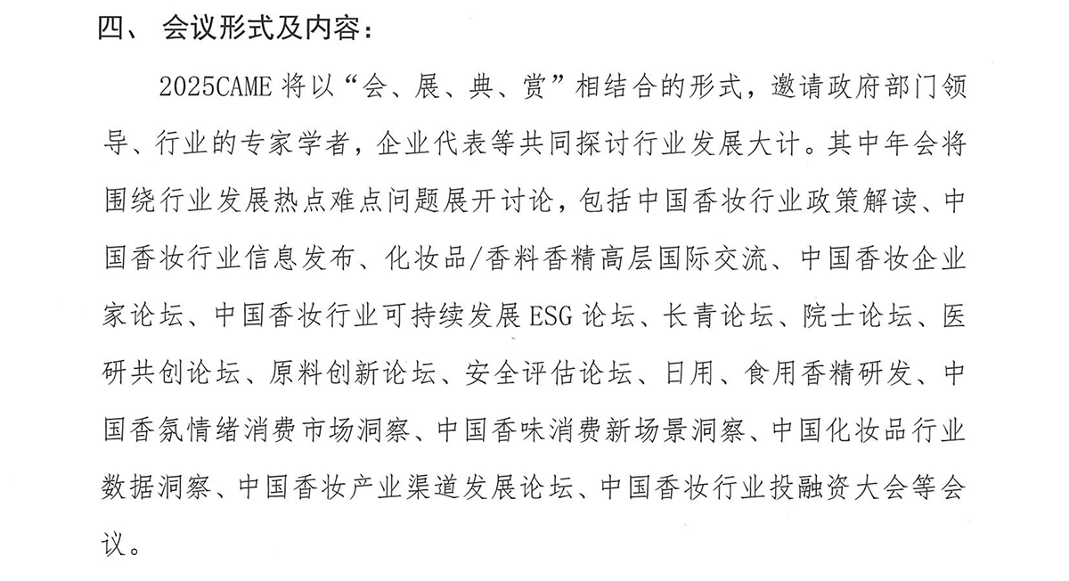 关于召开2025年中国香料香精化妆品行业年会暨精品博览会(2025 CAME)的通知(第一轮)