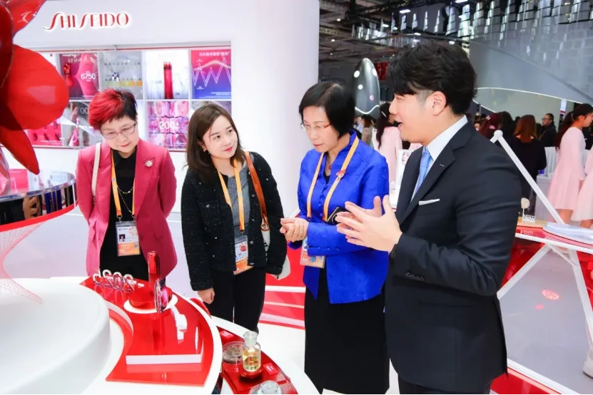 此次进博会吸引了欧莱雅、资生堂、宝洁、雅诗兰黛、拜尔斯道夫、花王、太平洋爱茉莉、联合利华、路威酩轩、丝芙兰、科蒂、高丝、安利、枫缇等一众国际知名化妆品企业。颜江瑛理事长逐一参观了相关企业展区,出席了部分企业的开馆仪式,对各个企业带来参展的新产品、新技术、新理念进行了详细的了解,与参展企业驻展领导进行会面沟通。