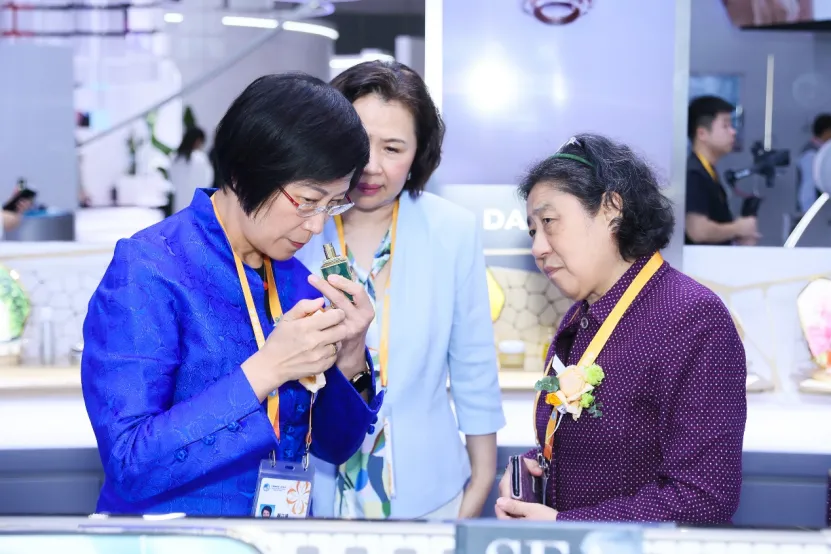 11月5日-6日,中国香料香精化妆品工业协会颜江瑛理事长参加博览会并走访了化妆品企业展区。