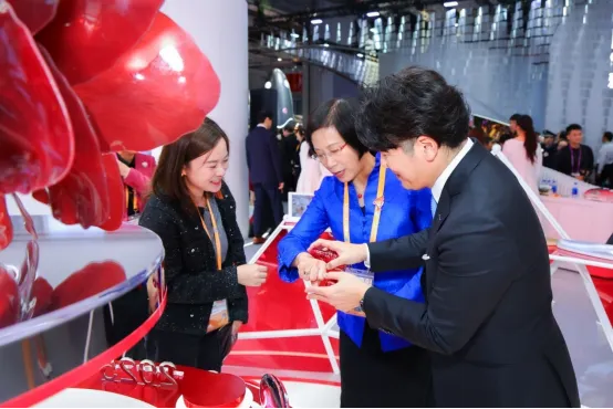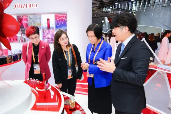 随后,颜江瑛理事长同日本驻华大使金杉宪治、日本驻上海总领事冈田胜,以及资生堂公司领导共同为此次进博会资生堂公司展区开幕剪彩,并在梅津利信总裁的陪同下,参观了资生堂公司展区。