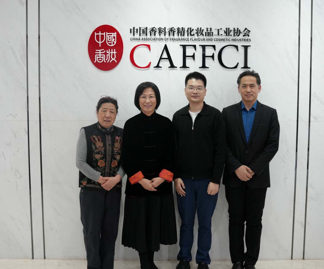 1月12日下午,谷雨生物科技集团股份有限公司(以下简称:谷雨)品牌联合创始人、总裁林雨汀、首席研发科学家李安章、科学传播专家马子渊、公关部负责人陈晓煊、总经办负责人张芸珊、品牌部经理吴玲、公关部经理金笛一行到访中国香料香精化妆品工业协会(以下简称:中国香妆协会),就企业发展、科研创新、行业合作等议题展开深入交流。中国香妆协会颜江瑛理事长、董树芬顾问、副秘书长兼化妆品部主任刘洋、融媒体中心主任赵洪伟、产业研究中心主任兼数字信息中心主任姚永斌一同参会。
