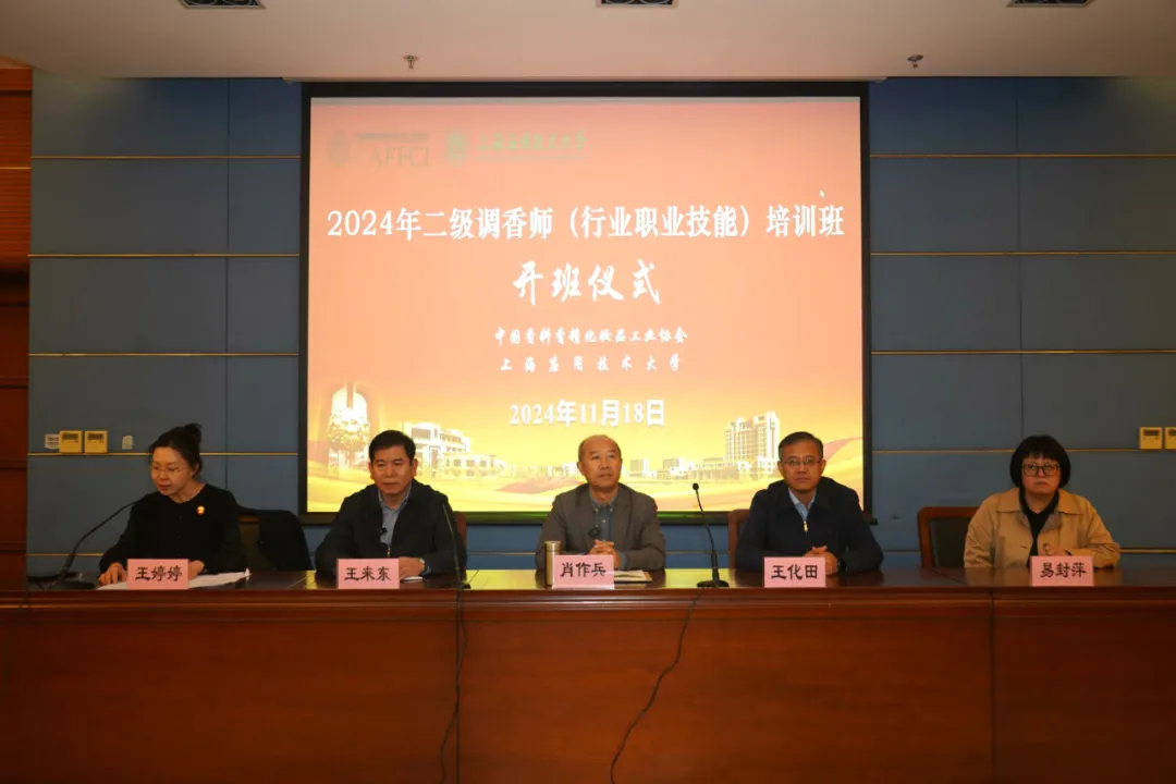 11月18日,由中国香料香精化妆品工业协会(以下简称“中国香妆协会”)主办、上海应用技术大学香料香精化妆品学部承办的2024年二级调香师培训班(第一期)开班仪式在上海应用技术大学奉贤校区顺利举办。