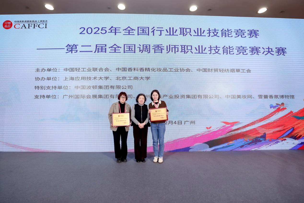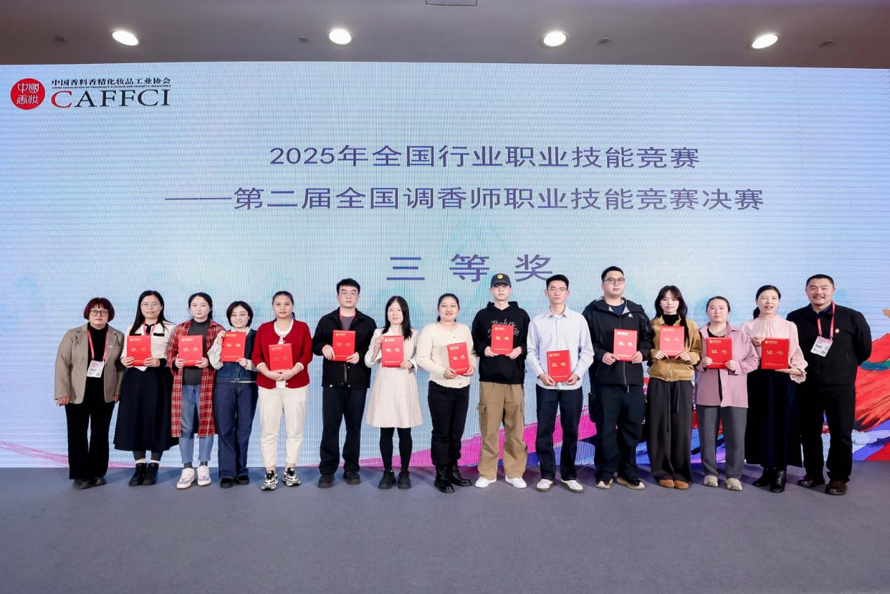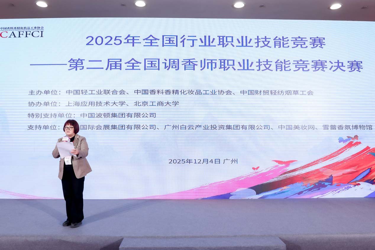 为深入贯彻落实国家人才强国战略,大力弘扬劳模精神、劳动精神、工匠精神,加强香料香精行业技能人才队伍建设,推动行业高质量发展,2025年12月4日,由中国轻工业联合会、中国香料香精化妆品工业协会(以下简称“中国香妆协会”)、中国财贸轻纺烟草工会共同主办的“2025年全国轻工行业职业技能竞赛——第二届全国调香师职业技能竞赛决赛”在广州白云国际会议中心成功举办。