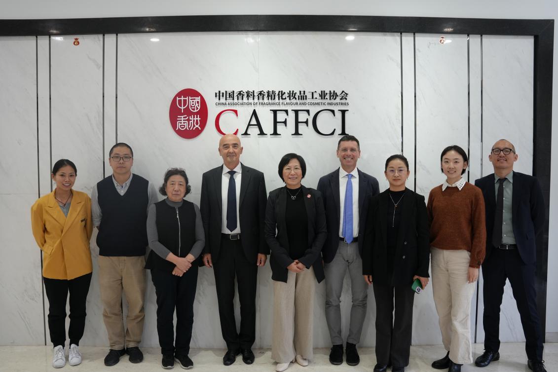 2025年10月28日下午,欧洲化妆品原料联合会(EFfCI)主席Giacomo Santus、秘书长Andrea Maltagliati率团到访中国香料香精化妆品工业协会(CAFFCI,以下简称“中国香妆协会”)。EFfCI中国秘书处执行专家Giovanni Chen、中国工作组组长杨莎莎、中国秘书处助理谈静文随行;中国香妆协会理事长颜江瑛、顾问董树芬、化妆品部副主任张鹏、国际事务部陈香莉出席会议,围绕化妆品行业国际协作、标准推广及会员合作等议题深入交流,凝聚多项合作共识。
