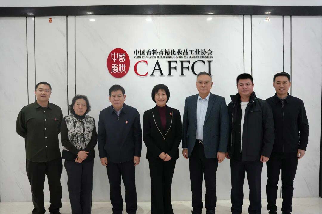 2025年12月18日,山东福瑞达生物股份有限公司(以下简称“福瑞达公司”)董事长高春明、高级经理仲华维,山东化妆品行业协会监事长任少杰等一行三人到访中国香料香精化妆品工业协会(以下简称“中国香妆协会”)开展工作交流,中国香妆协会理事长颜江瑛、副理事长王来冬、顾问董树芬、秘书长穆旻及部门主任参加了座谈交流。