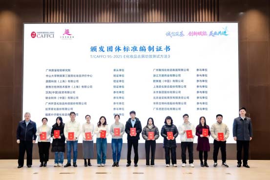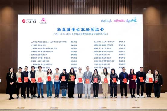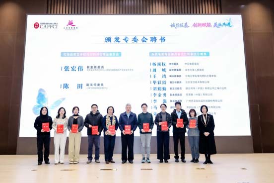 为强化专委会专业力量,推动领域内规范创新发展,会议举行了化妆品安全评估和功效评价专业委员会新增副主任委员、头皮毛发专业委员会主任委员与副主任委员聘书颁发仪式,为《化妆品护发和防断发功效测试方法》《化妆品去屑功效测试方法》两大团体标准的牵头单位、验证单位及参与单位颁发证书,表彰其在标准编制与落地实施中的突出贡献。