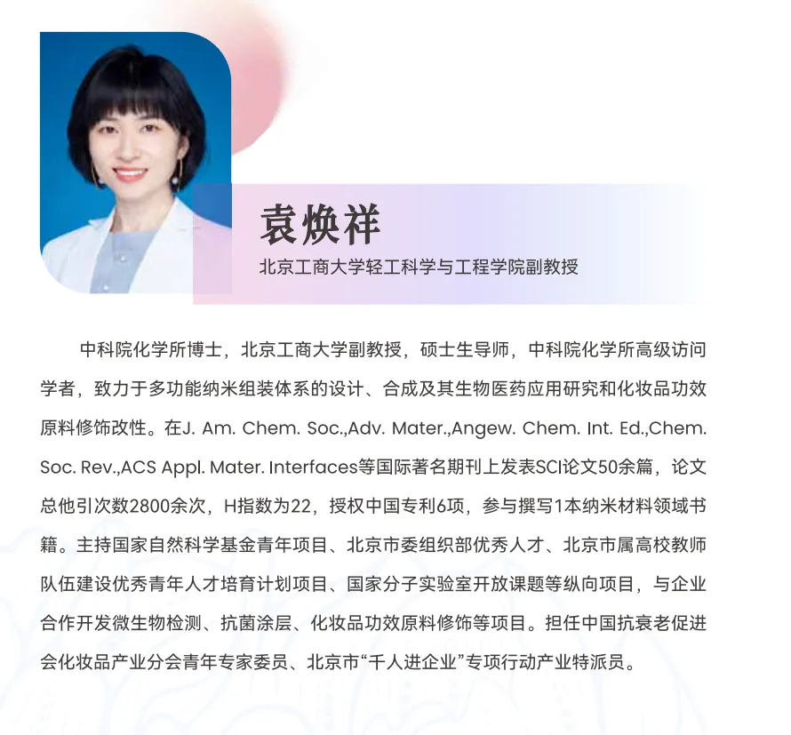 北京工商大学轻工科学与工程学院袁焕祥副教授就《超分子化学及其在化妆品中的应用》展开讨论,强调了技术创新对于推动化妆品行业发展的重要性。随着科技的进步和研究的深入,超分子化学在化妆品领域的应用将会越来越广泛,不断推动行业向更高层次发展。同时,他也鼓励年轻学者和科研人员积极投身于超分子化学的研究中,不断探索新的应用领域和可能性,为化妆品行业的可持续发展贡献自己的力量。