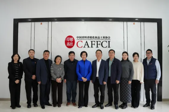2024年11月26日上午江北新区市场监管局局长茅俊海一行6人到访中国香料香精化妆品工业协会(以下简称中国香妆协会),江北新区市场监管局副局长张毛、江北新区市场监管局食药监管办主任孙璐、江苏迈达新材料股份有限公司董事长陈福新、江北新区科技投资集团副总经理戴慧等参加。中国香料香精化妆品工业协会理事长颜江瑛、副理事长王来冬、顾问董树芬、秘书长穆旻、副秘书长兼办公室主任李英、会展部副主任胡晟等参加了交流座谈。