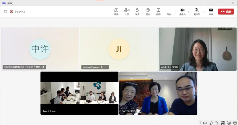 8月21日下午,中国香料香精化妆品工业协会(以下简称:中国香妆协会)与英国化妆品盥洗用品香料协会(以下简称:CTPA)交流会议以线上形式成功召开。中国香妆协会颜江瑛理事长、董树芬顾问、刘洋副秘书长兼化妆品部主任及CTPA Emma Meredith会长、Nicholas Shaw Núñez法规主任、Johanna Irigaray国际事务经理、任欣祺顾问出席会议并讲话。