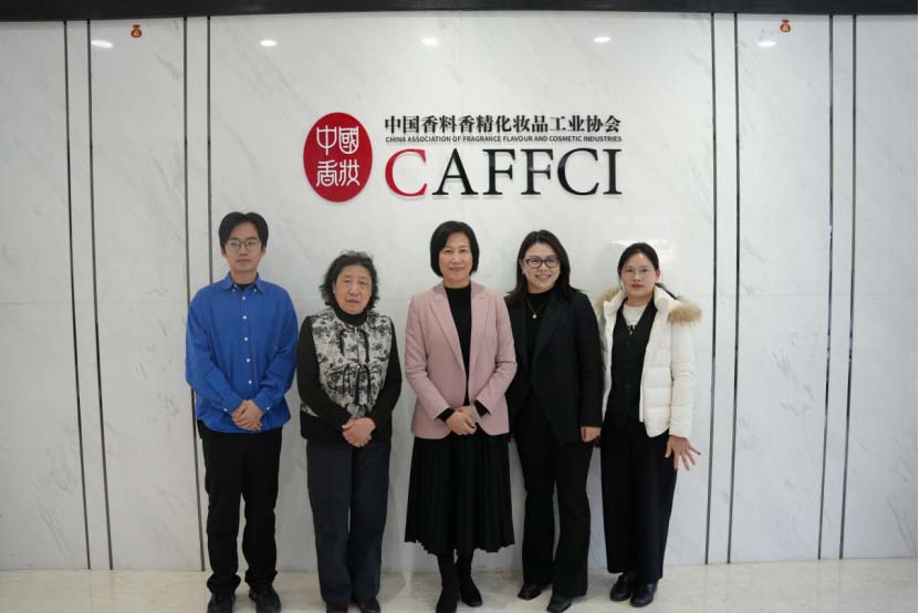 2025年12月25日,华测检测认证集团股份有限公司(以下简称“华测检测”)日化产品线总经理刘瑾玲、日化产品线市场经理张意霞一行到访中国香料香精化妆品工业协会(以下简称“中国香妆协会”)。中国香妆协会理事长颜江瑛、顾问董树芬参加座谈。